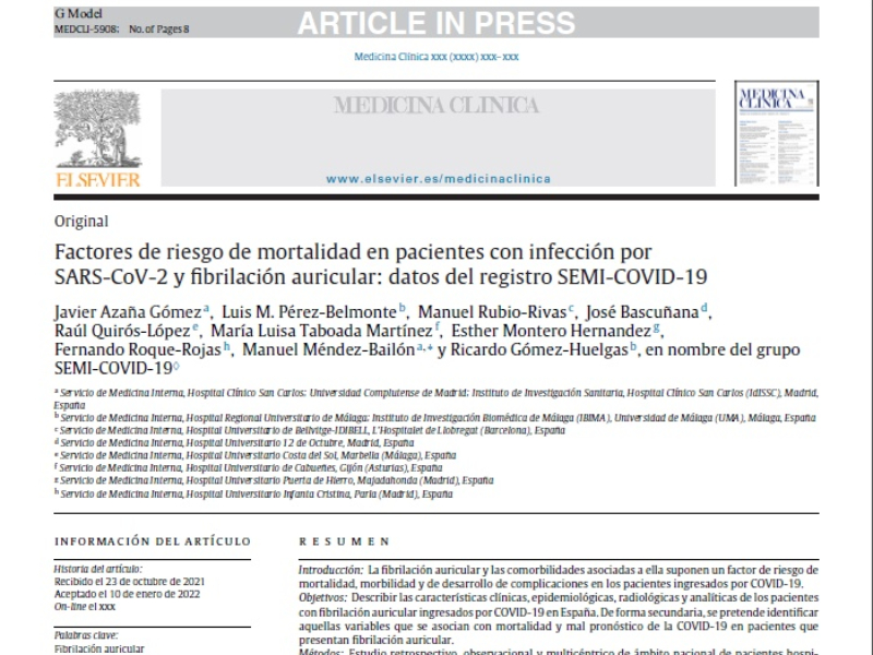 “Factores de riesgo de mortalidad en pacientes con infección por SARS-CoV-2 y fibrilación auricular: datos del registro SEMI-COVID-19” | Fernando Roque-Rojas. M. Interna