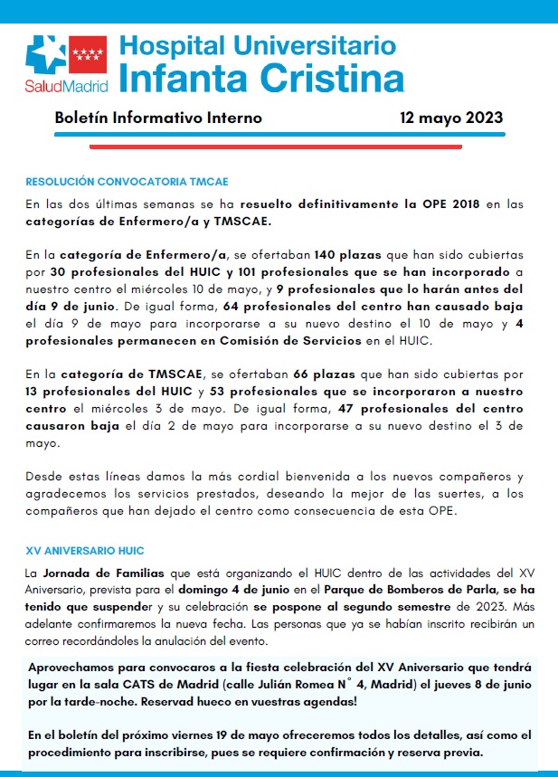 Boletín Informativo Interno | 12 mayo 2023