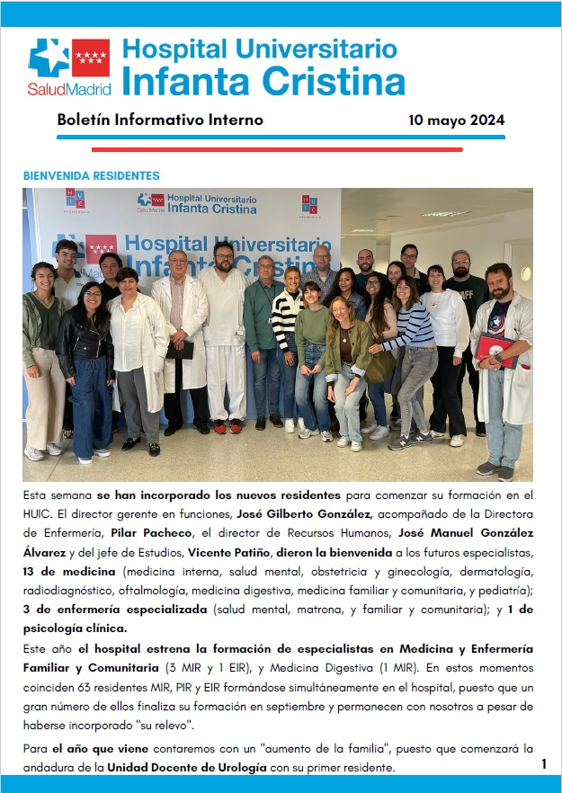Adjuntamos el Boletín Informativo Interno semanal del 10 de mayo de 2024