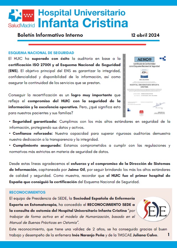 Se adjunta el Boletín Informativo Interno semanal del 12 de abril de 2024