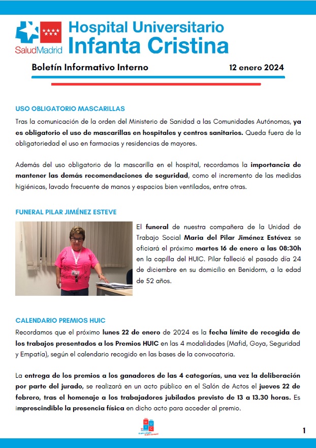 Adjuntamos el Boletín Informativo Interno semanal del 12 de enero de 2024