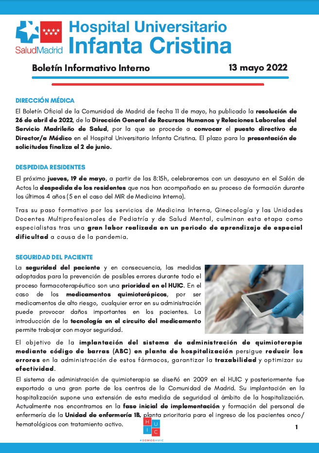 Adjuntamos el Boletín Informativo interno semanal del 13 / 05 / 2022
