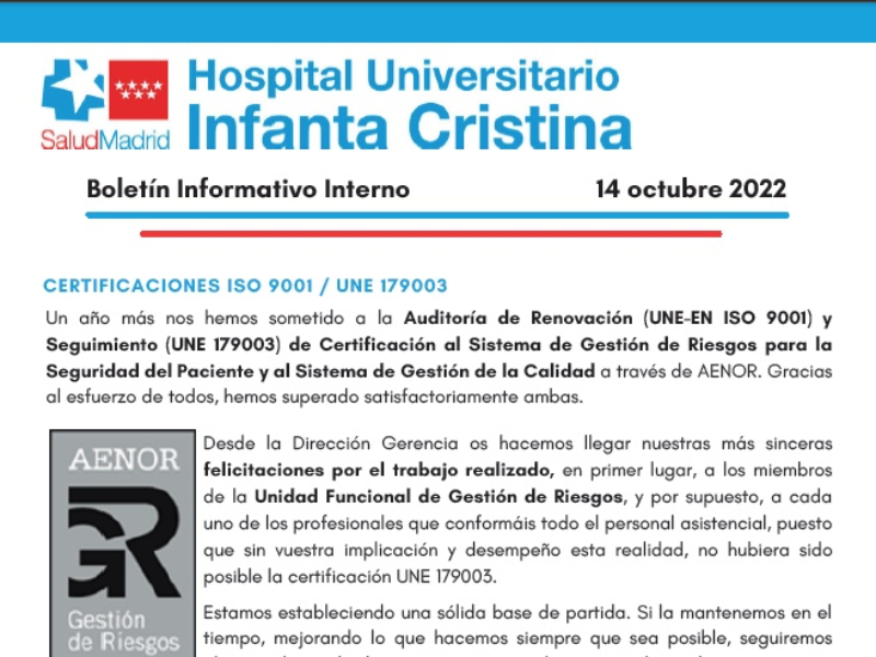 Adjuntamos el Boletín Informativo interno semanal del 14 /10 / 2022