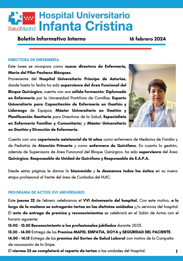 Adjuntamos el Boletín Informativo Interno semanal del 16 de febrero de 2024