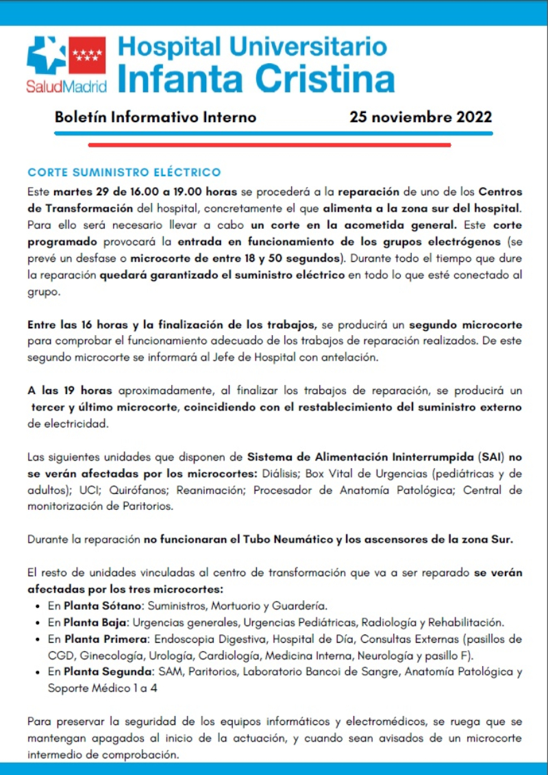 Se adjunta el Boletín Informativo interno del 25 de noviembre de 2022