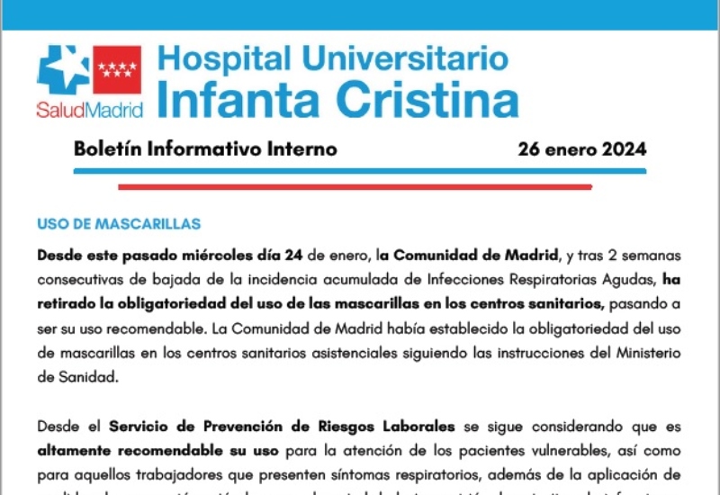 Adjuntamos el Boletín Informativo Interno semanal del 26 de enero de 2024