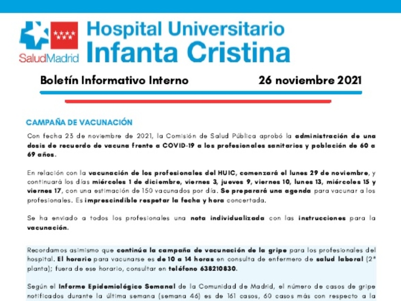 Adjuntamos el boletín interno semanal del 26 / noviembre / 2021