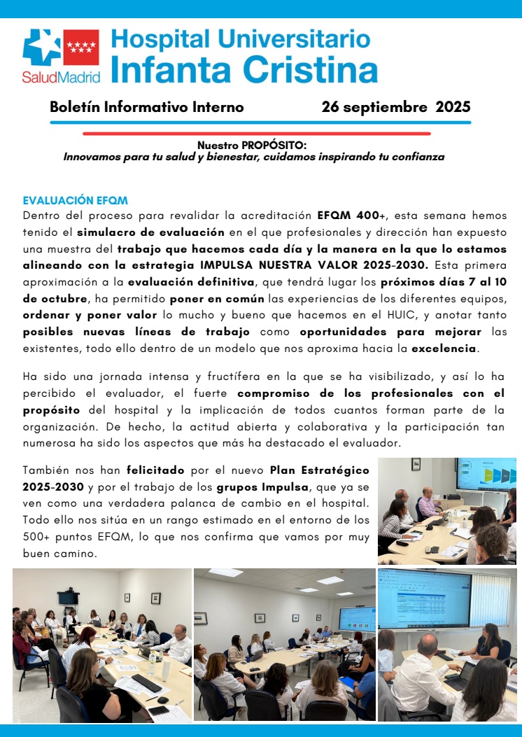 Adjuntamos el Boletín Informativo Interno semanal del 26 de septiembre de 2025
