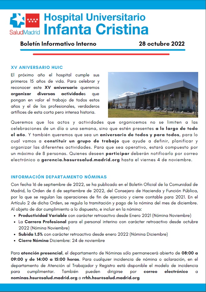 Se adjunta el boletín Informativo Interno del 28 de octubre de 2022