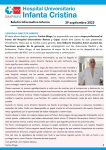 Se adjunta el Boletín Informativo Interno semanal del 209 de septiembre de 2023