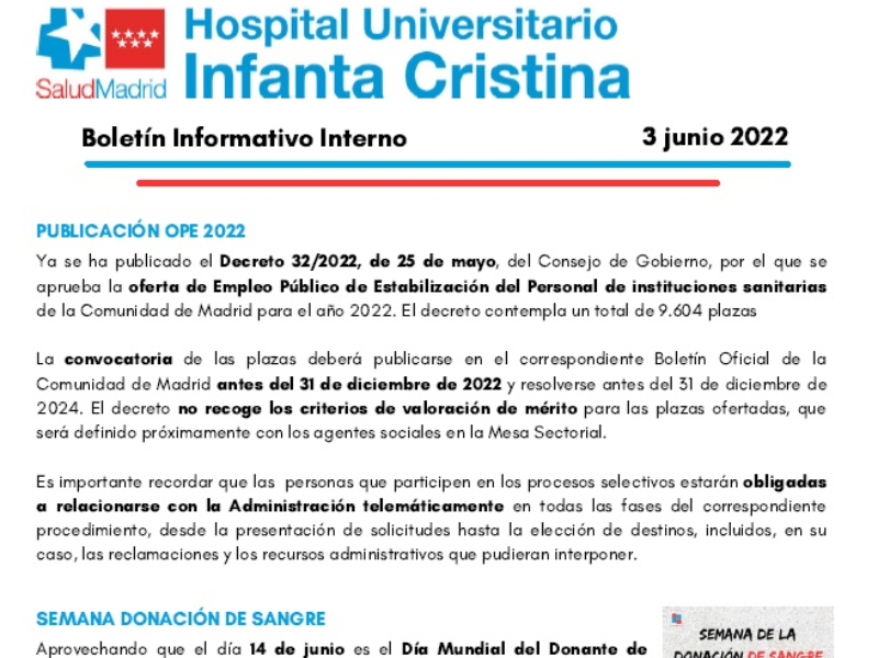 Boletín Informativo interno | 3 junio 2022