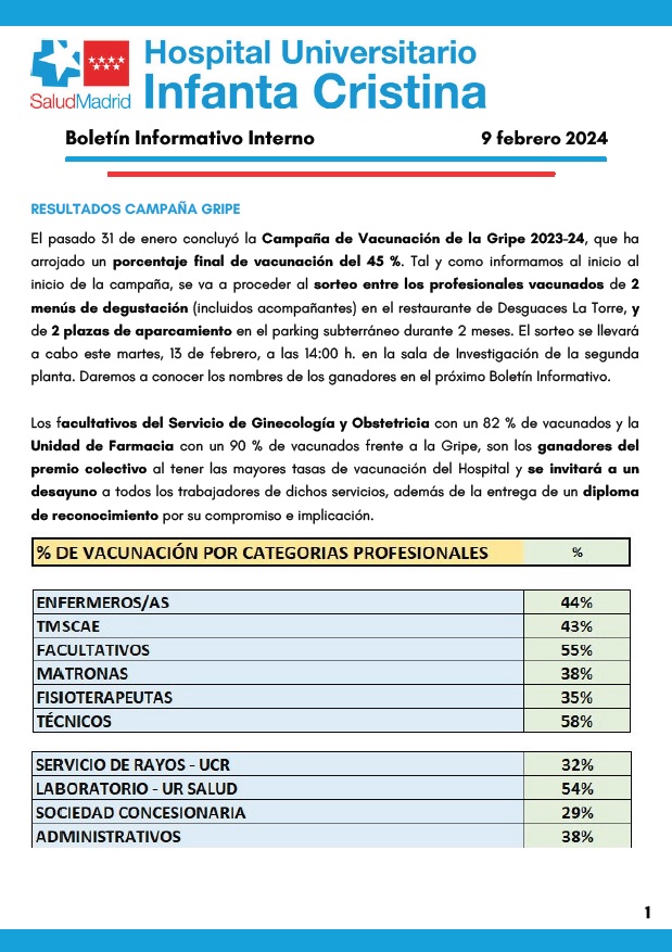 Adjuntamos el Boletín Informativo Interno semanal del 9 de febrero de 2024