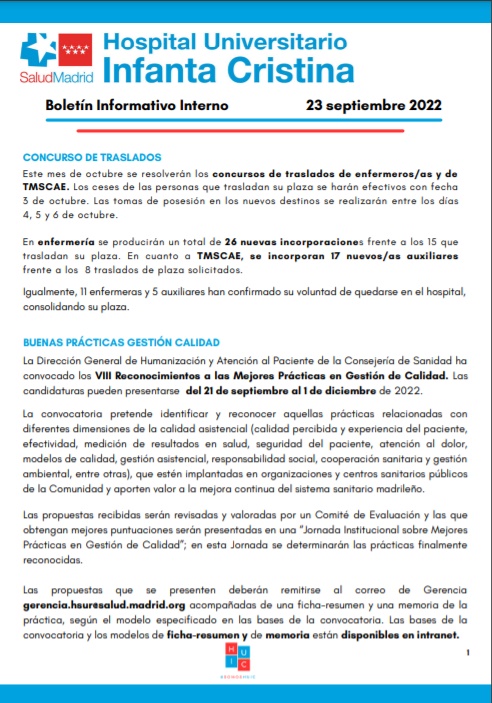 Boletín Informativo interno | 30 septiembre 2022