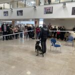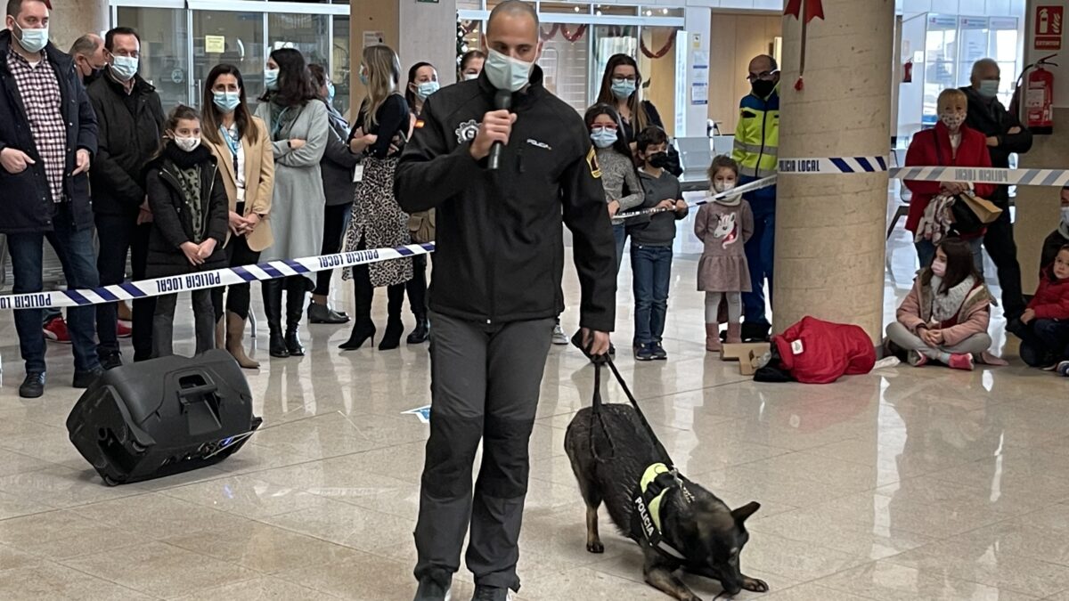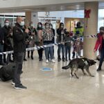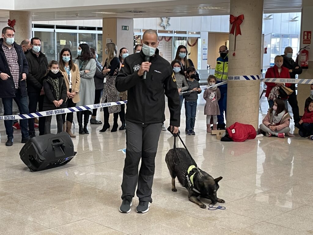 La Policía Municipal de Parla muestra el trabajo de los perros entrenados en la detección de sustancias estupefacientes. Chula, un ejemplar hembra de Pastor Alemán de Checoslovaquia, hizo las delicias del público mostrando su habilidad para encontrar las sustancias que su adiestrador escondió entre el público. Os dejamos las fotos. Los videos están disponibles en el canal de YOUTUBE del hospital