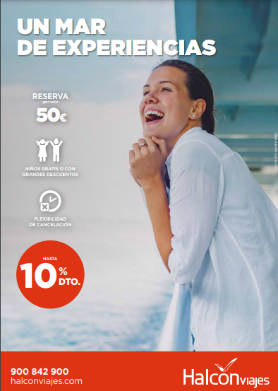 La oficina de Halcón Viajes de Parla (C/ Real 7 Parla· Tlf:91 605 63 91) nos ha hecho llegar un recordatorio del inicio de la campaña de venta anticipada de Cruceros 2023 con oferta de hasta el 10% de descuento en diferentes navieras.