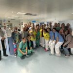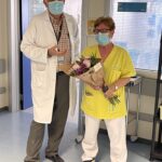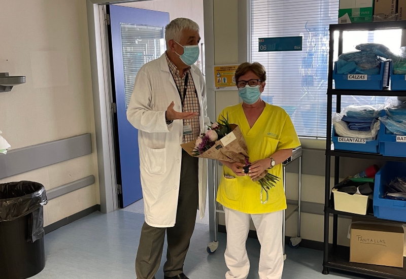 Virtudes recibió de sus compañeros de la UCI un ramo de flores con el que quisieron mostrarle su cariño y admiración.