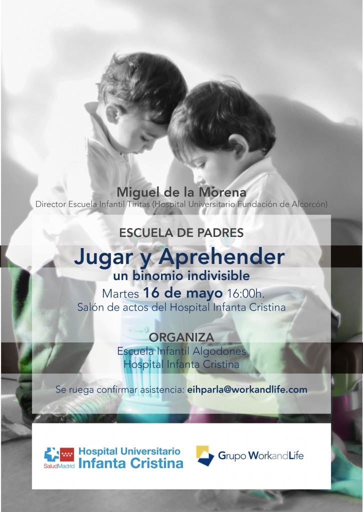 La Escuela Infantil Entre Algodones ha organizado una escuela de padres con el tema “Jugar y aprehender, un binomio indivisible”. Será el próximo día 16 de mayo a las 16:00 en el salón de actos del Hospital.