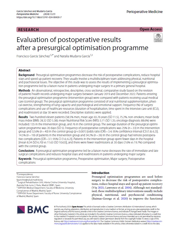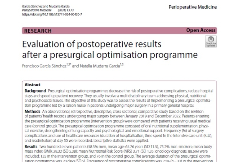 “Evaluation of postoperative results after a presurgical optimisation programme” | Francisco García Sánchez y Natalia Mudarra García