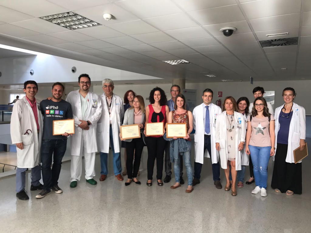 El gerente del centro, doctor Carlos Mingo, el director Médico, doctor Juan Torres, el director de Recursos Humanos, José Manuel González y los responsables de la Comisión de Formación, Marta Blázquez y el dr. Vicente Patiño han hecho entrega de un diploma a los residentes salientes.