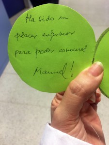Uno de los pacientes ingresados escribió “ha sido un place enfermar para poder conoceros”, que emocionó a los niños y sus monitores.