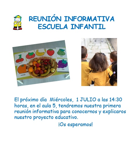 EL 1 DE SEPTIEMBRE VUELVE A PRESTAR SERVICIO LA GUARDERÍA. El miércoles 1 de julio a las 14:30 se celebrará en el aula 5 una reunión informativa
