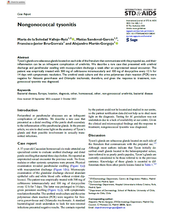 “Nongonococcal tysonitis” | María de la Soledad Vallejo Ruiz, Dermatología