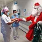 Como en años anteriores y en esta ocasión respetando al máximo la distancia social para evitar contagios, nos visitó Papa Noel cargado de regalos para los niños del hospital. La mañana del 24, Papá Noel se acercó por la planta de hospitalización infantil y por las urgencias pediátricas para animar a padres y entregar regalos a los niños con los que consiguió dibujar una sonrisa en sus rostros.
