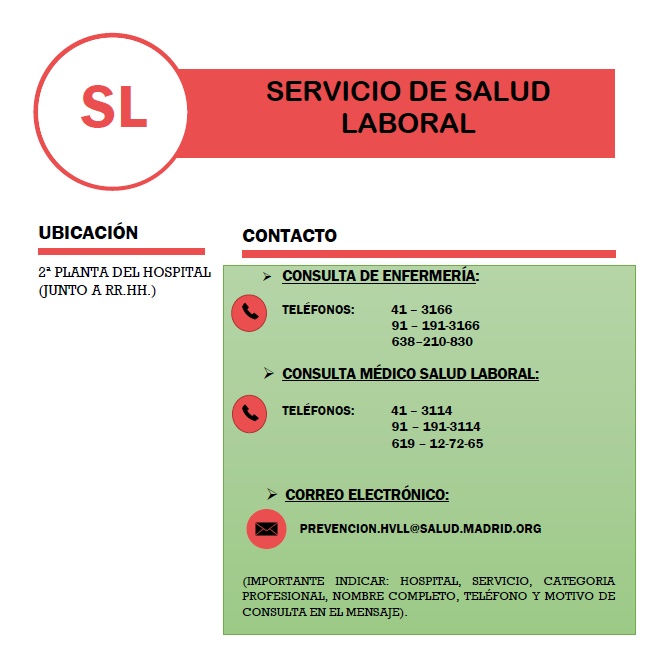 prevencion.hvll@salud.madrid.org, fax 91 191 90 95 o entregarlos personalmente en los despachos del Servicio de Prevención ubicados en la Planta 2, junto a RR.HH.