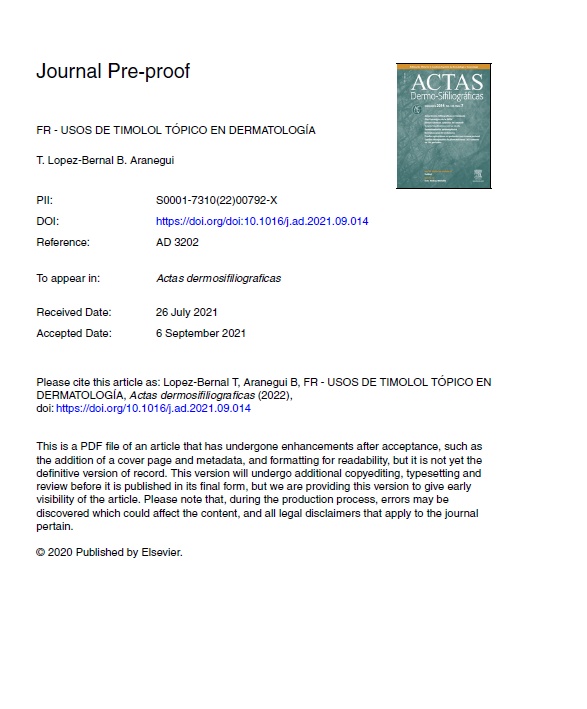 “Topical Timolol in Dermatology” | Beatriz Aranegui y Teresa Lopez Bernal, Dermatología